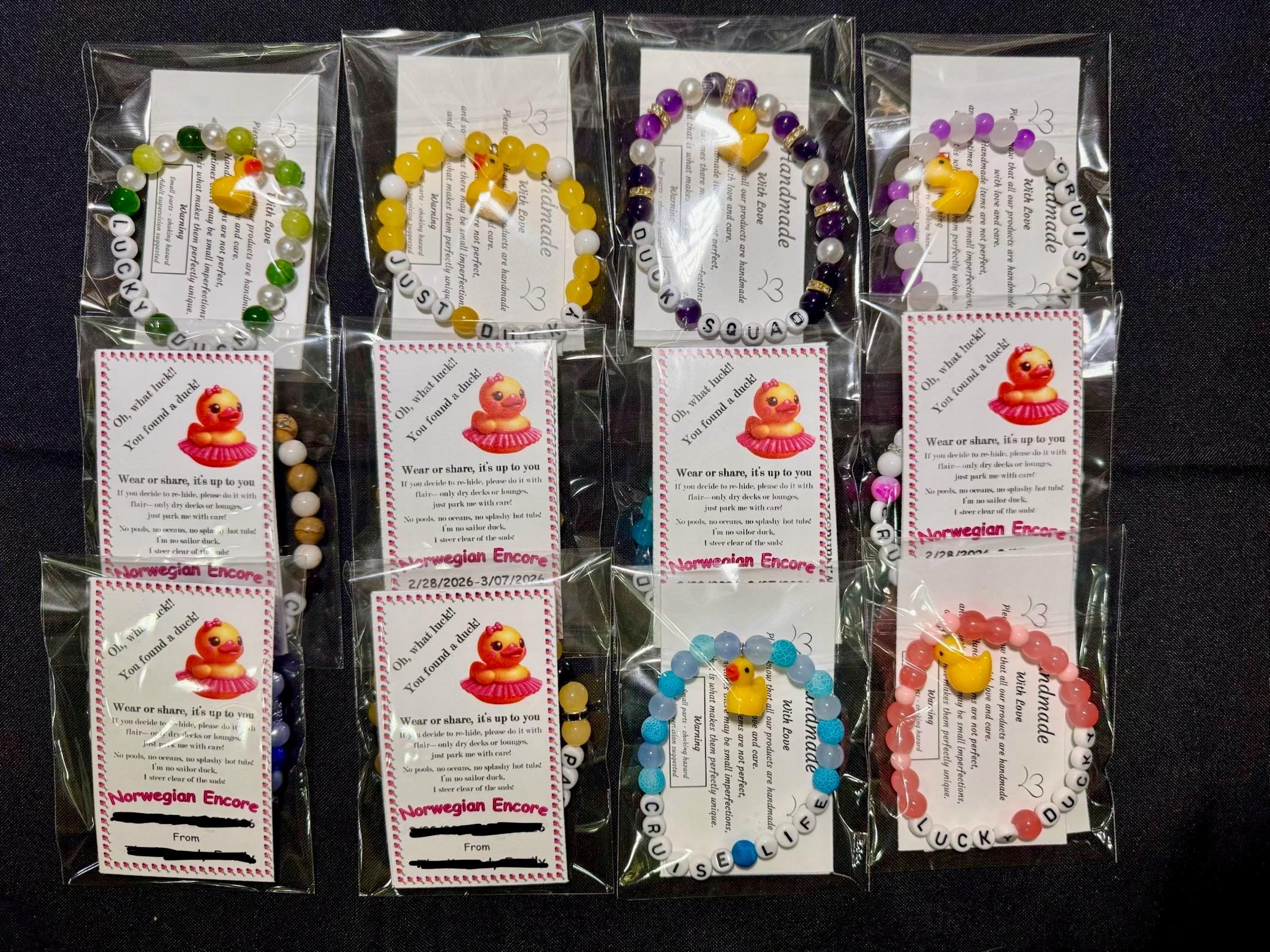 These are perfect and so beautifully handmade. This is the 3rd time I’ve ordered these for various cruises and always received compliments on the bracelets. Thank you so much!
