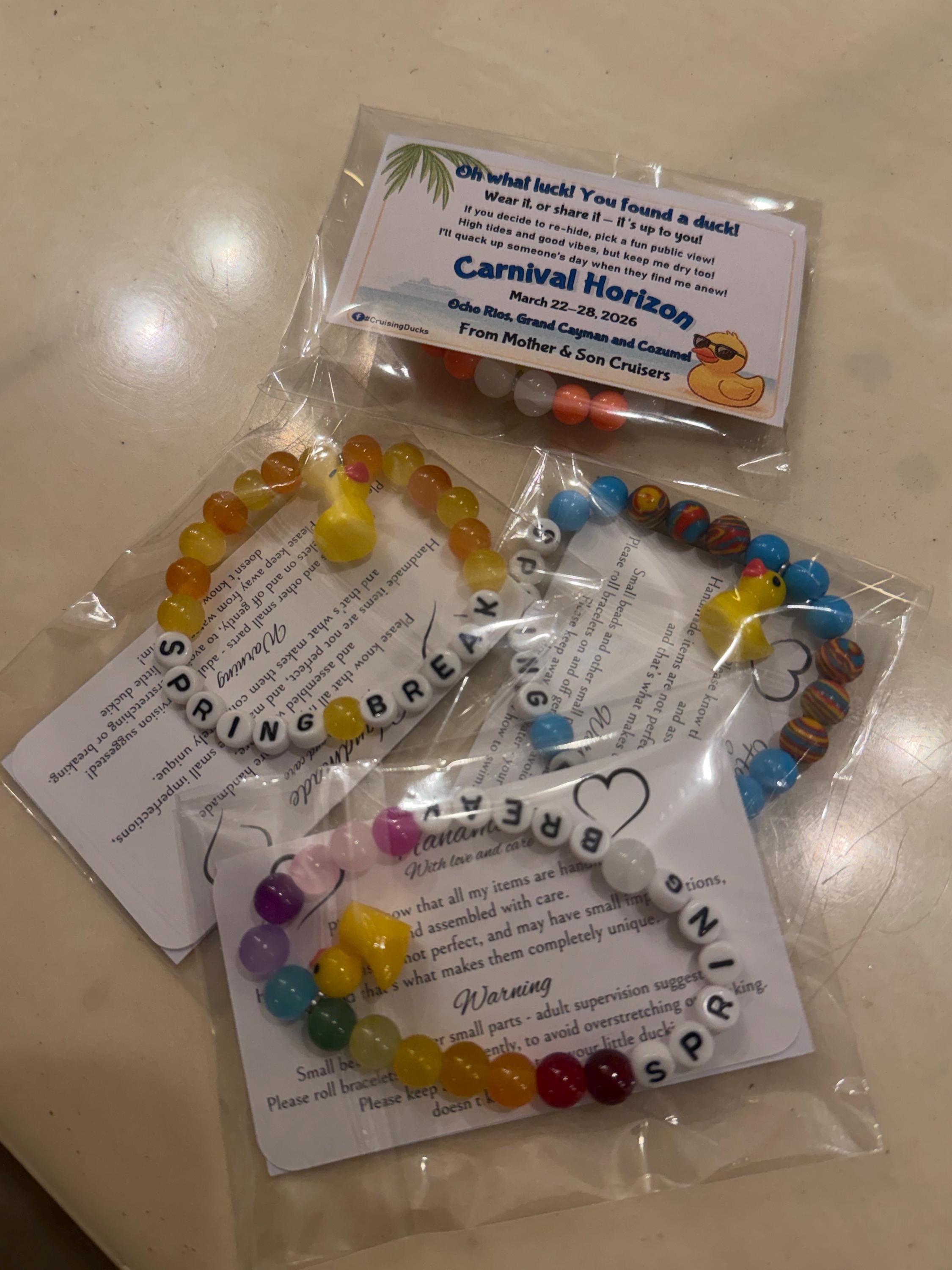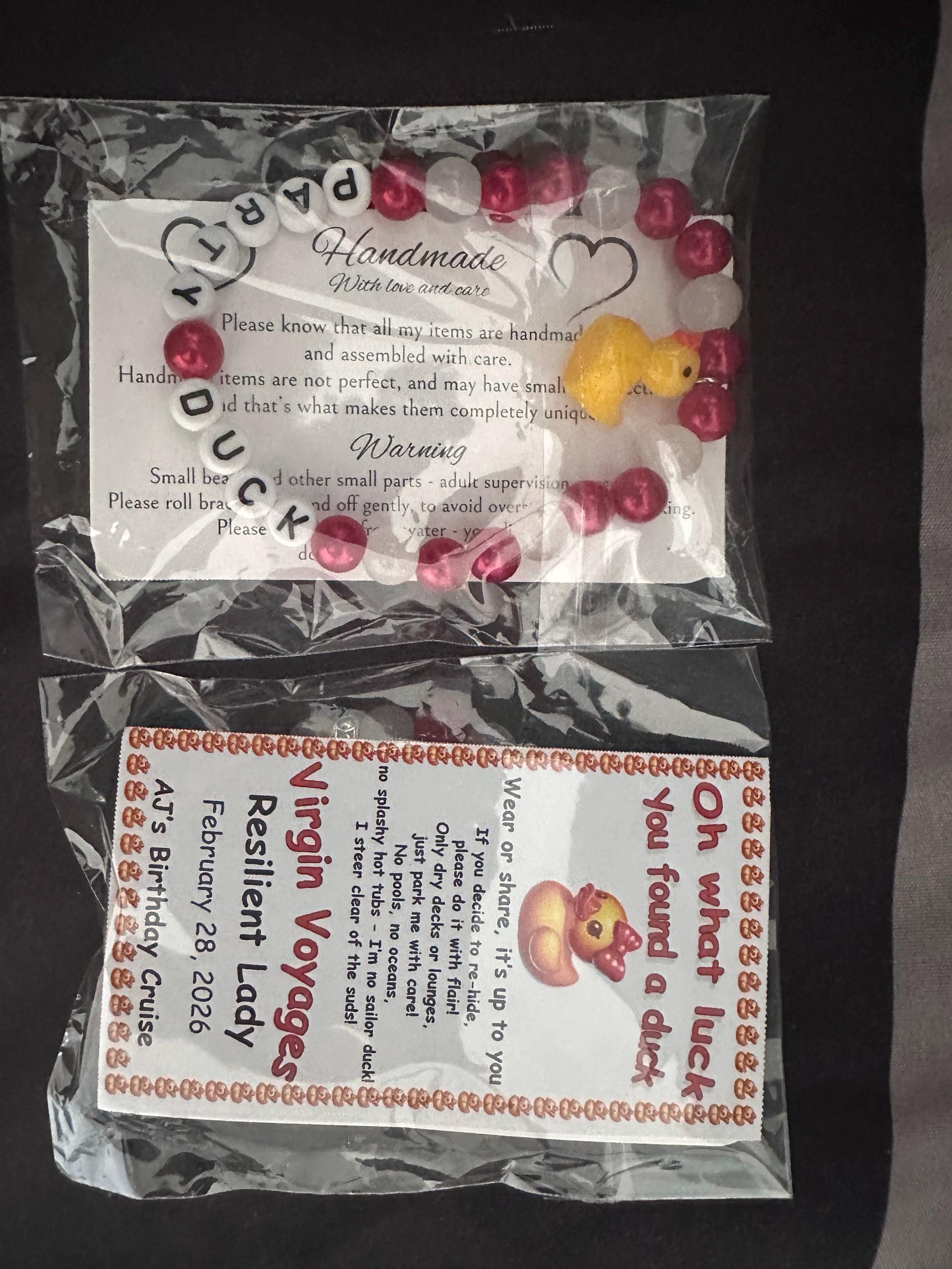 These bracelets were for my birthday cruise on Virgin Voyages, so I requested as much red and white as was possible in my bracelets. They arrived, and were exactly what I wanted! I proceeded to order more. The bracelets were a hit! Shipping was lightning speed fast. I will be a return customer.