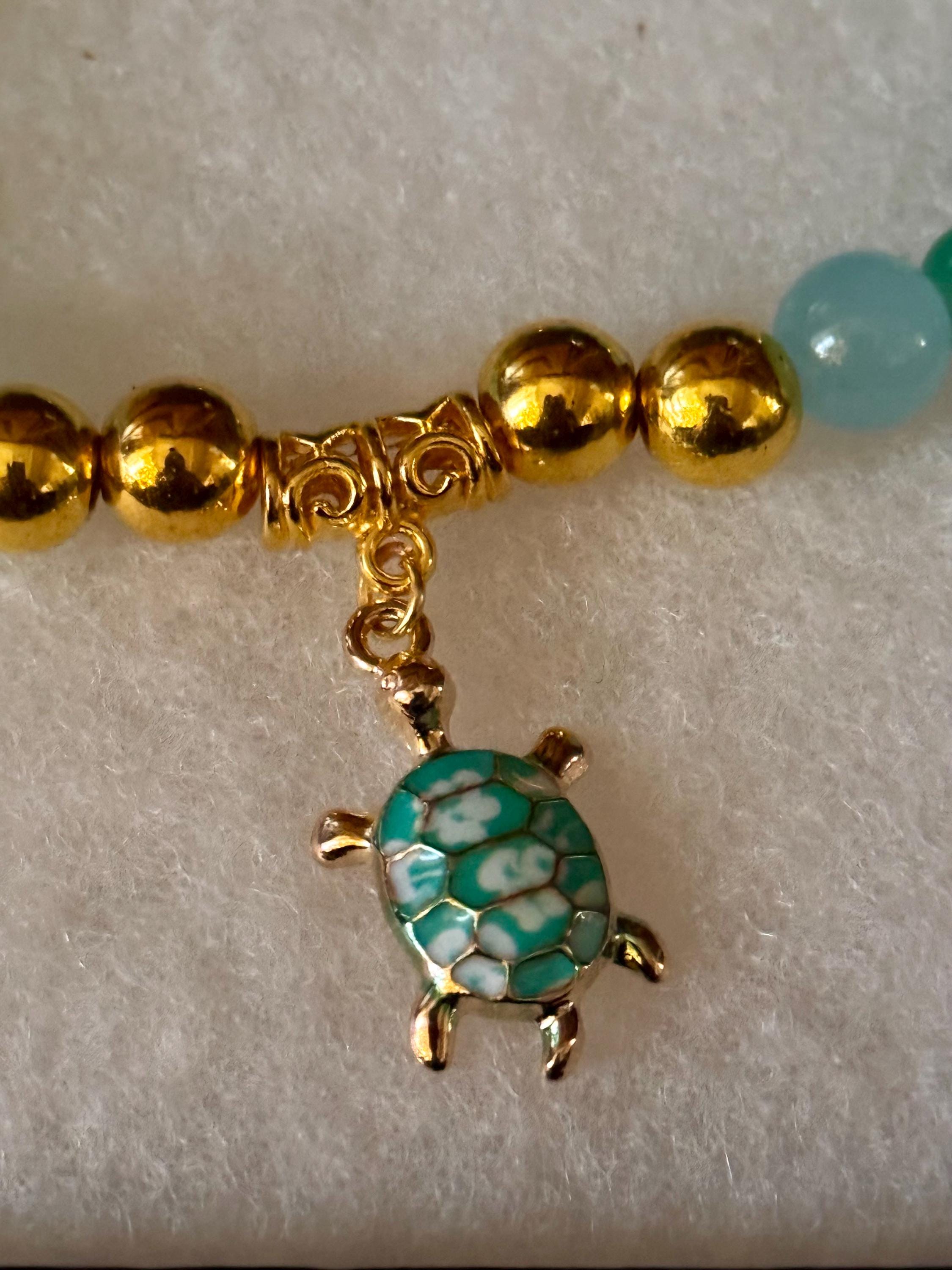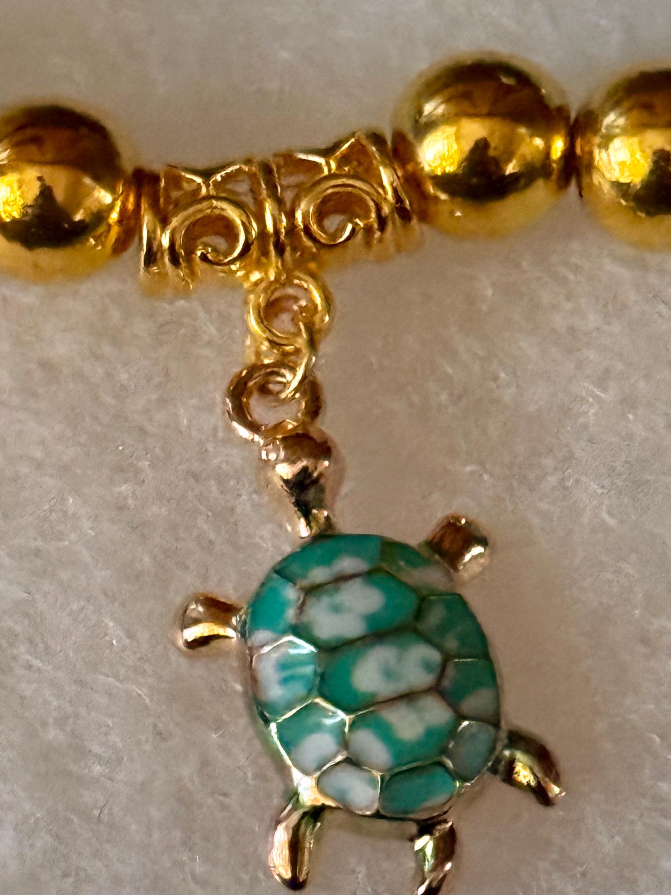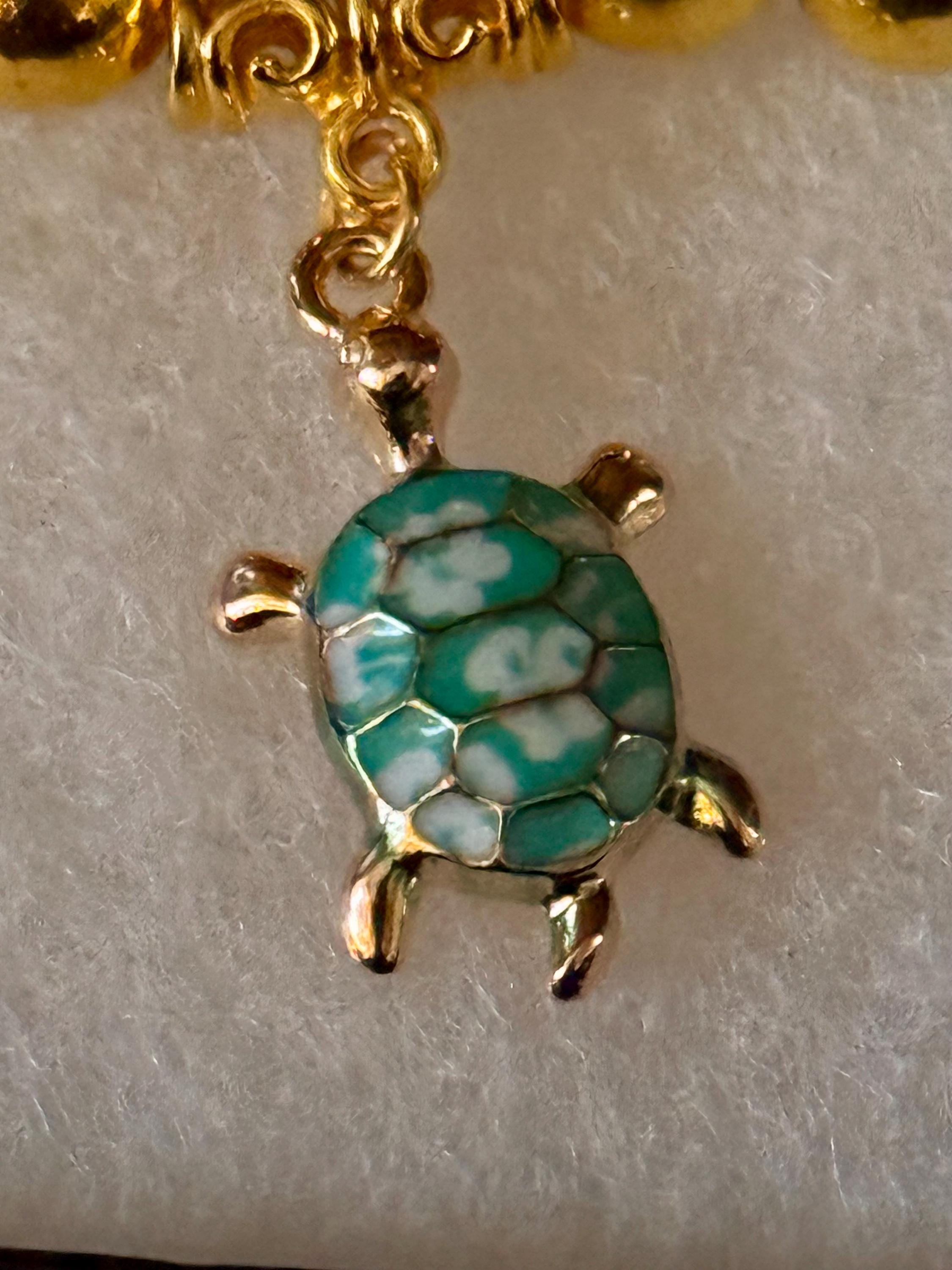 Bring the ocean breeze home, and add a touch of coastal elegance to your look with this stunning handmade turtle bracelet!