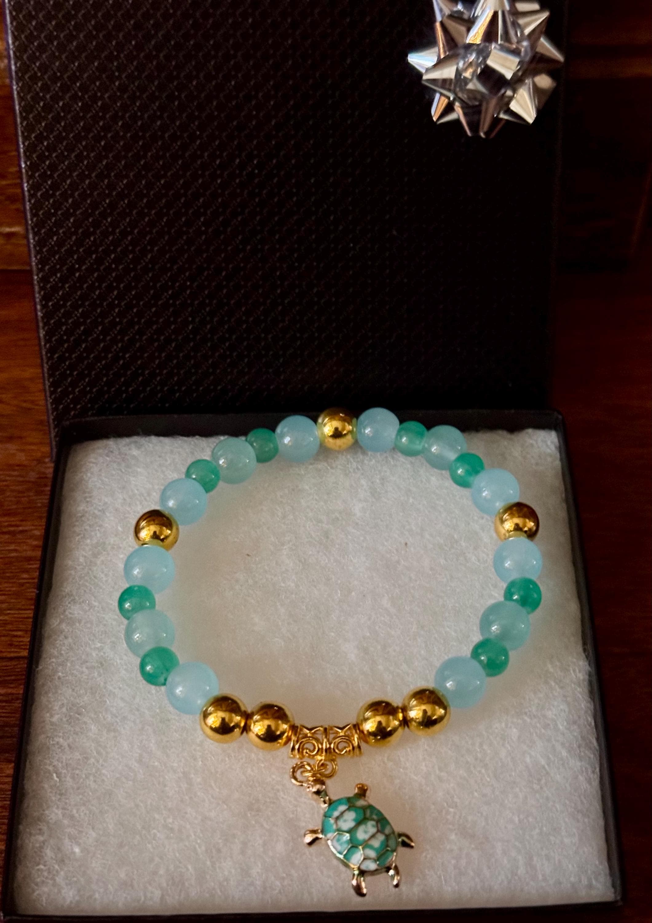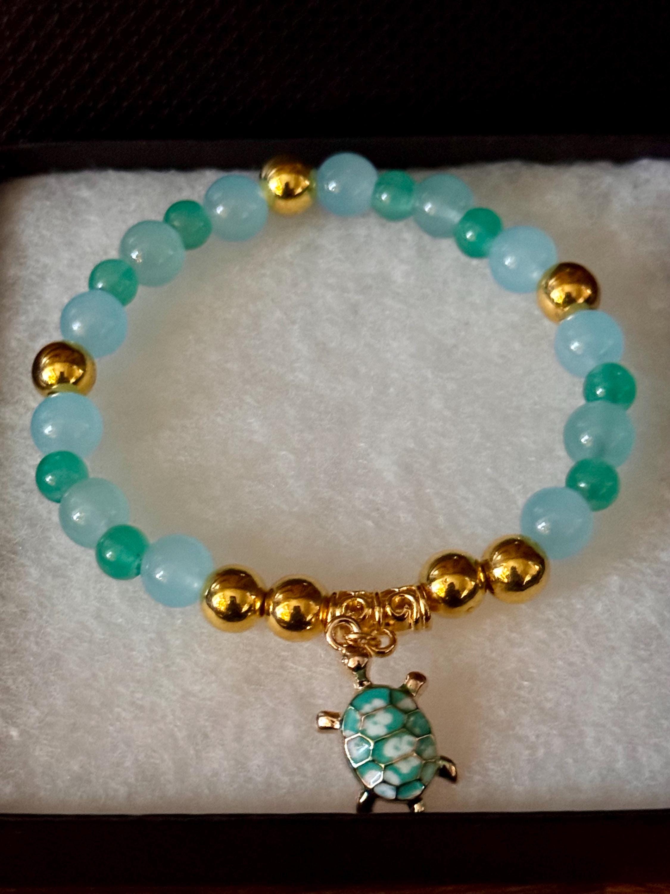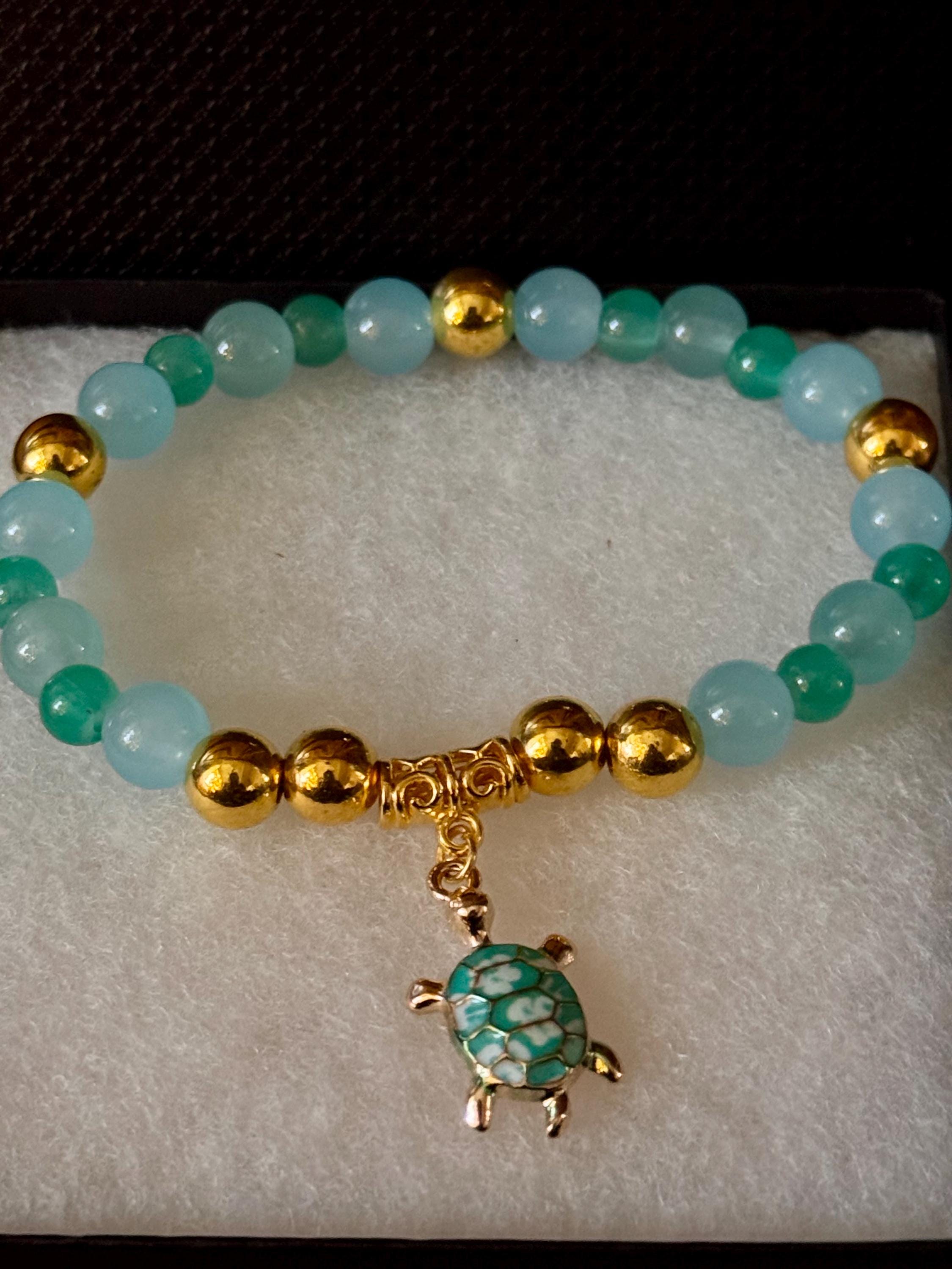 Bring the ocean breeze home, and add a touch of coastal elegance to your look with this stunning handmade turtle bracelet!
