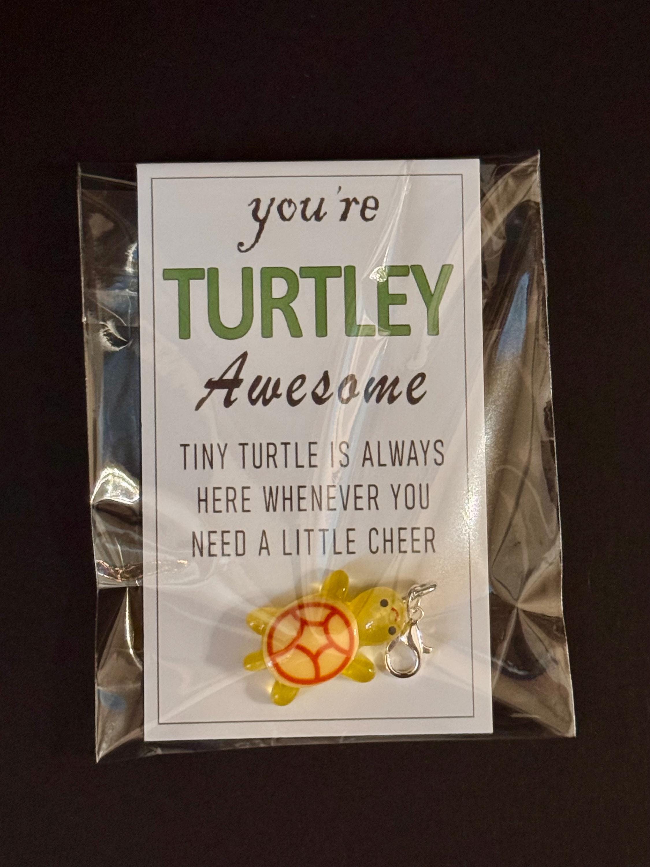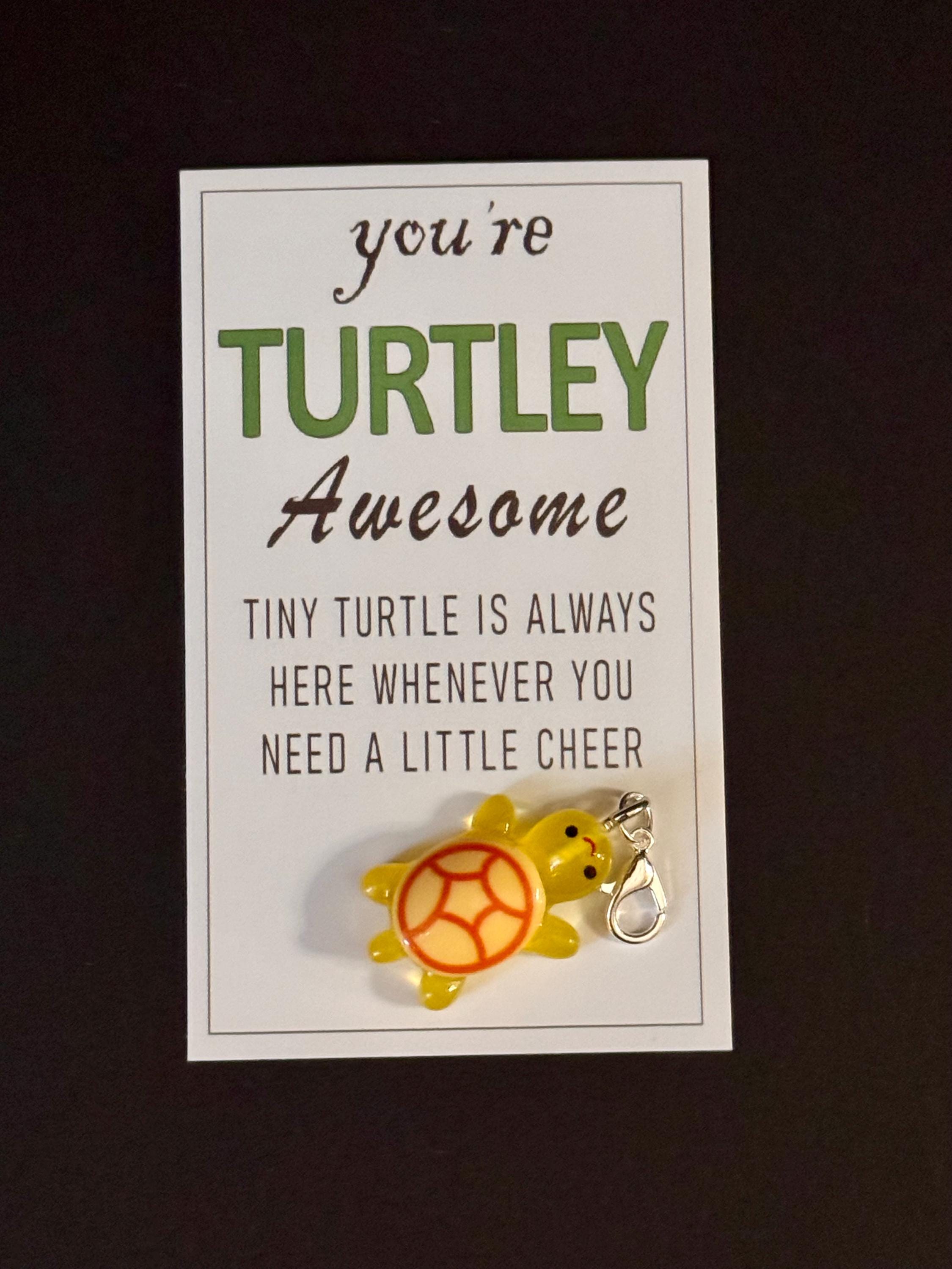 Each charm comes attached to a sweet “You’re Turtley Awesome” card — perfect for gifting, trading, or brightening someone’s day. 💛