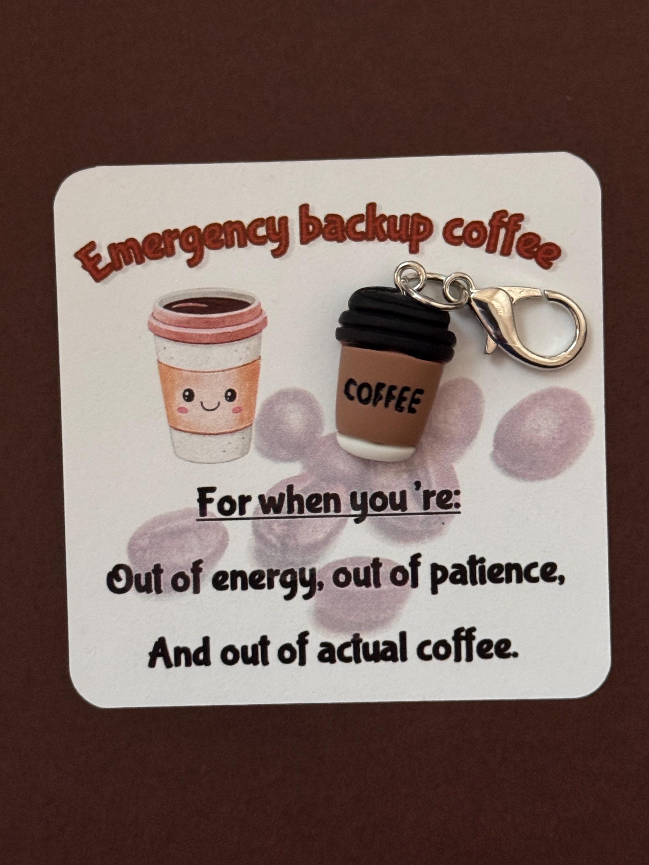 Emergency Backup Coffee Charm, Keychain, Zipper Pull, Resin