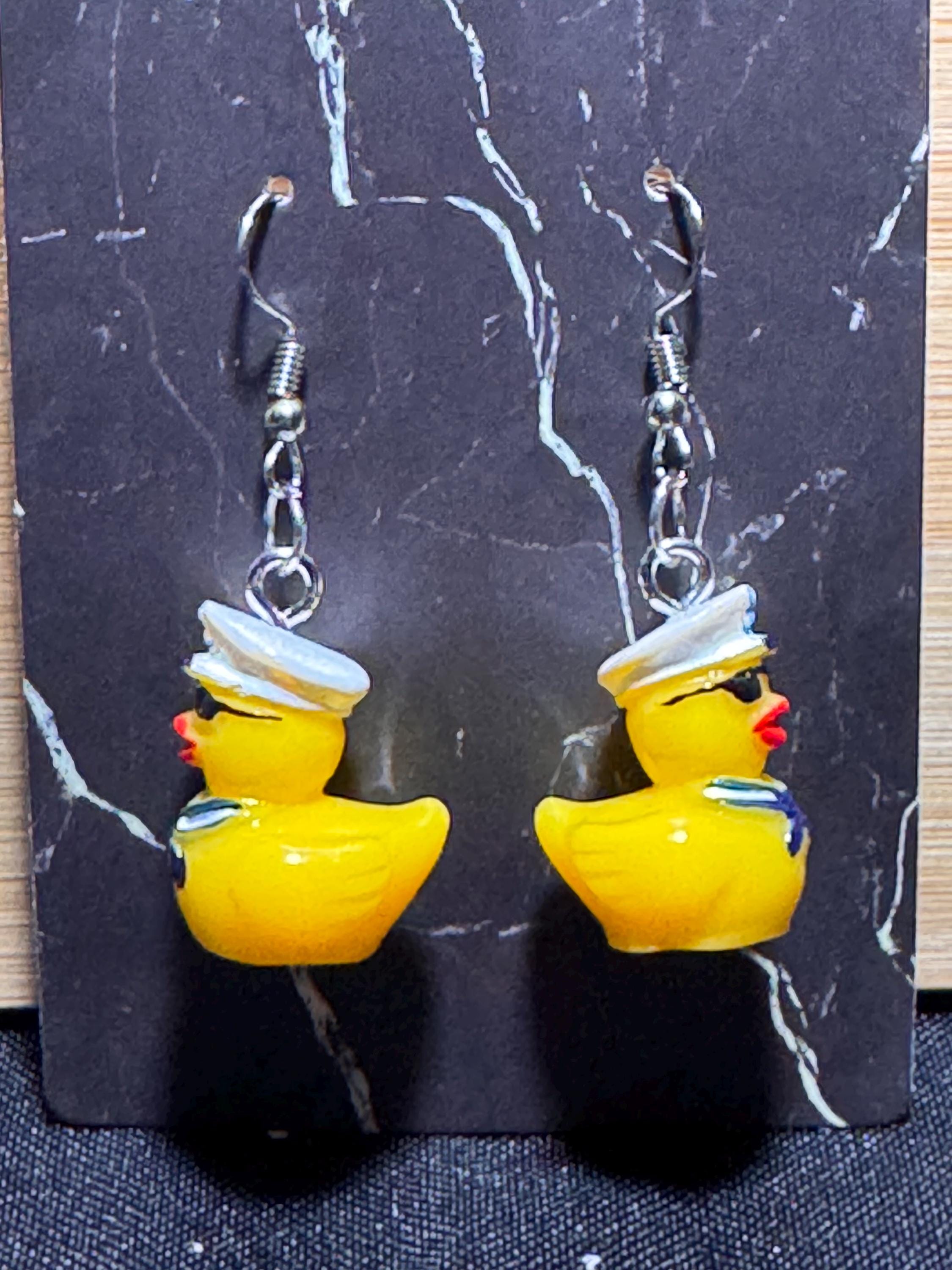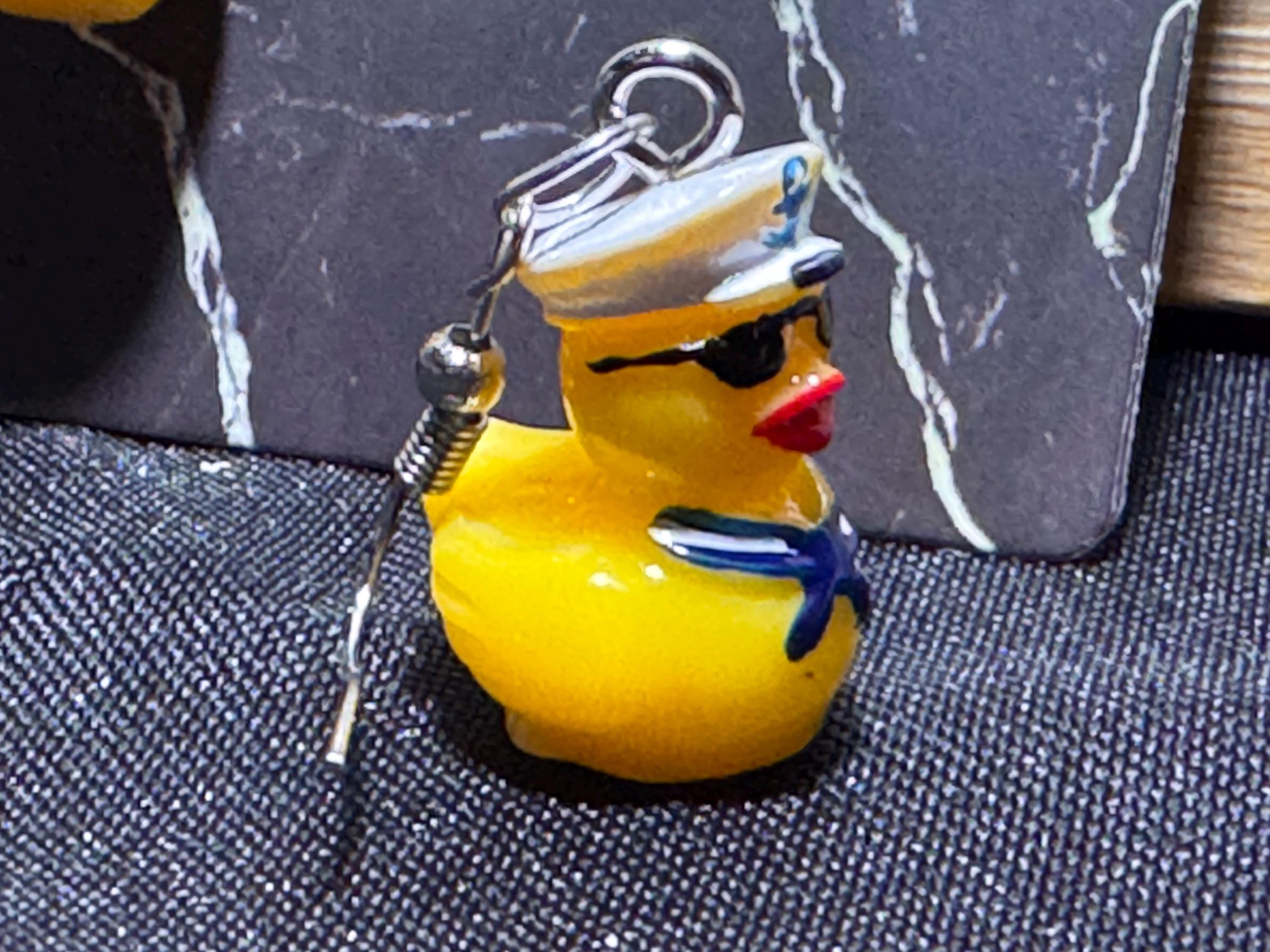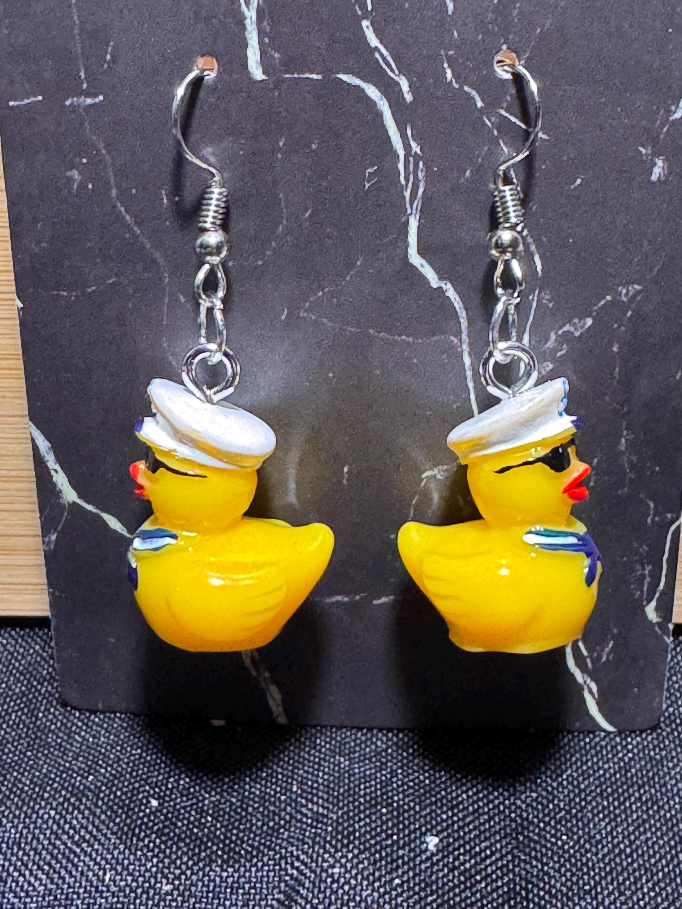 Resin Sailor Duck Dangle Earrings • Stainless Steel Hooks, Cruise Jewelry