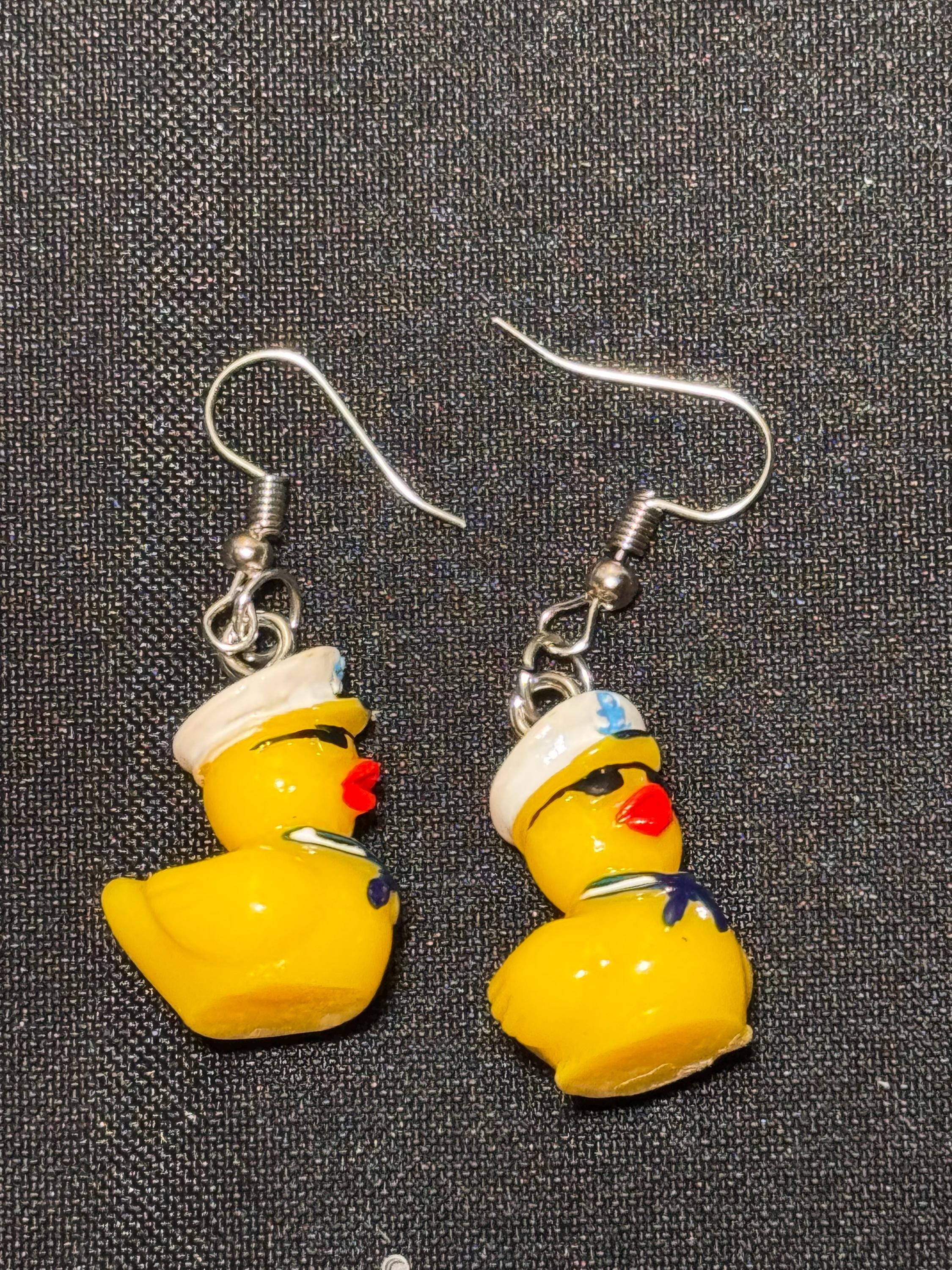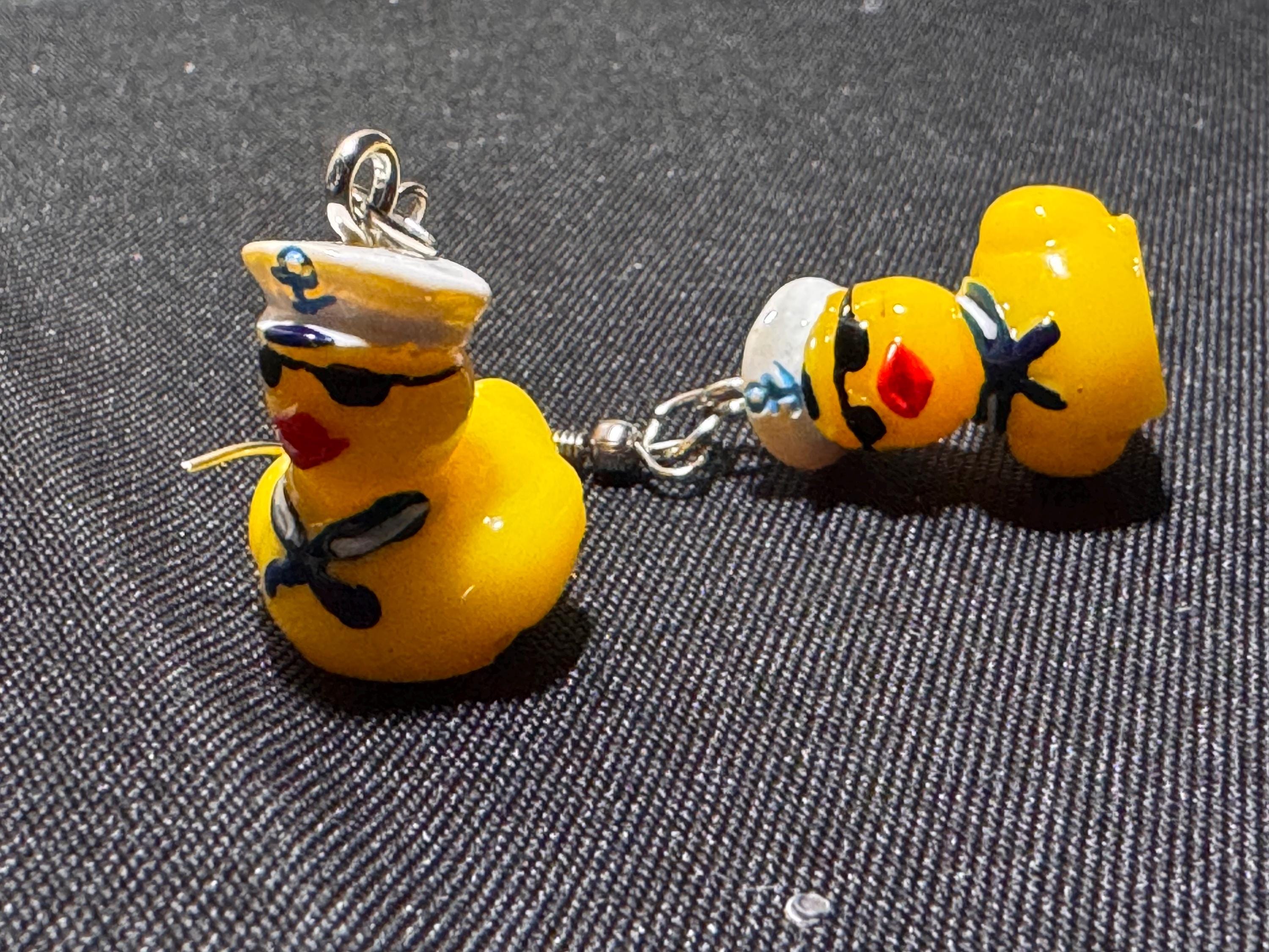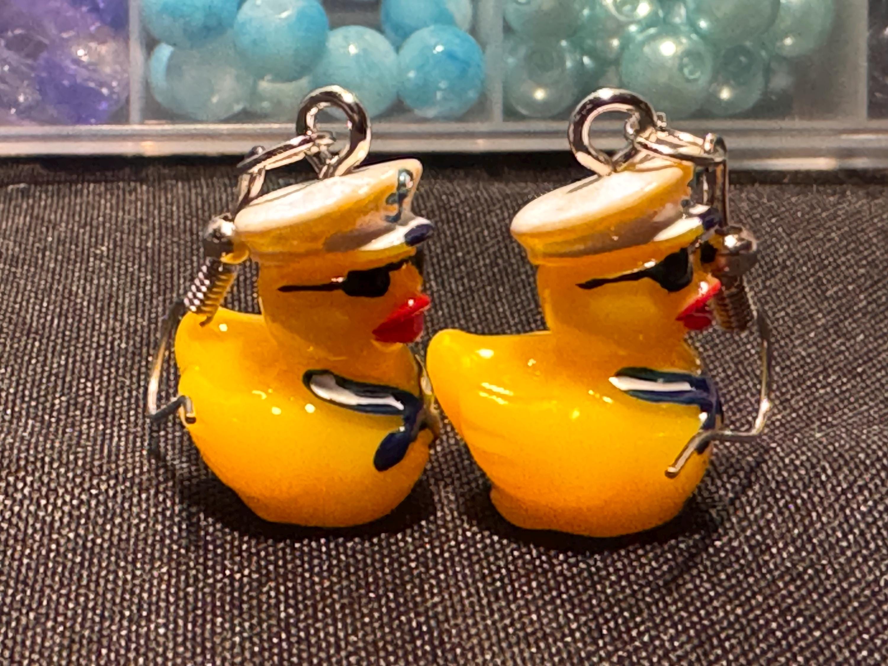 Resin Sailor Duck Dangle Earrings • Stainless Steel Hooks, Cruise Jewelry