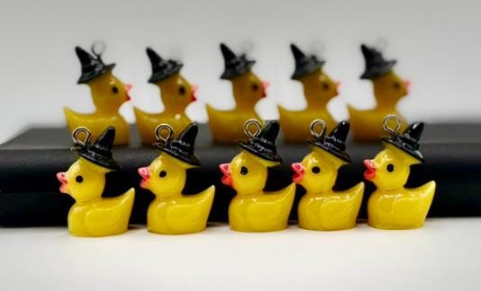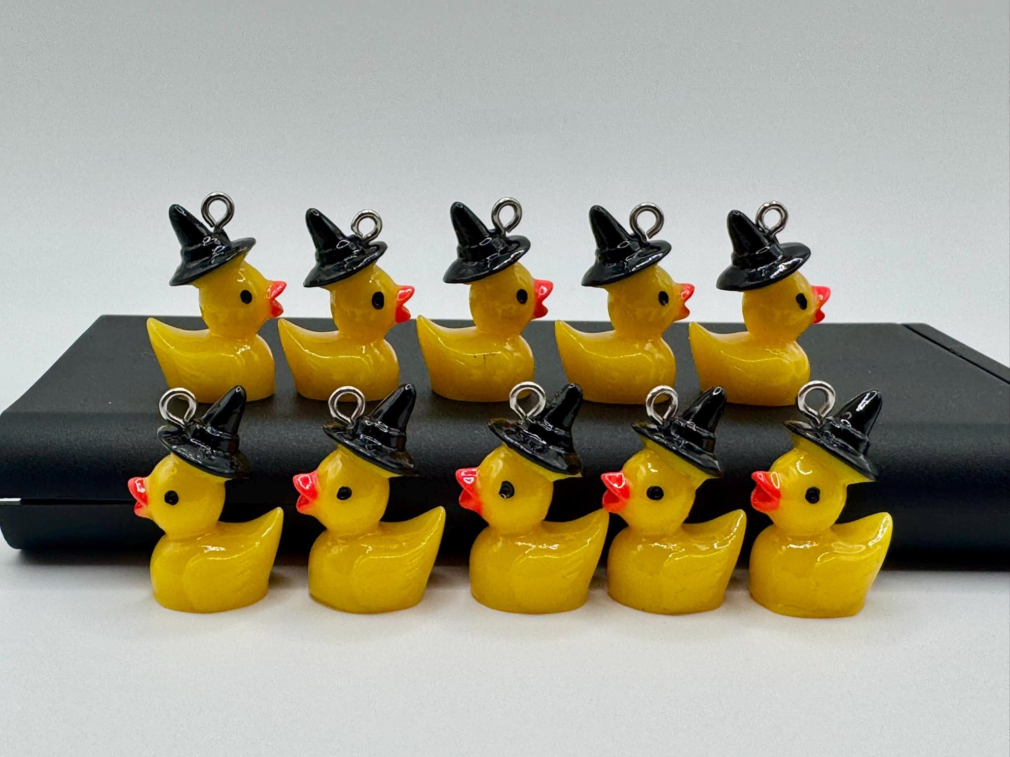 Add a splash of quacky cuteness to your next project! πŸ¦†β€¨This listing is for a set of 10 witch hat mini resin ducks. Each with a sturdy silver-tone eye hook, making them perfect for jewelry making, crafts, and DIY projects.