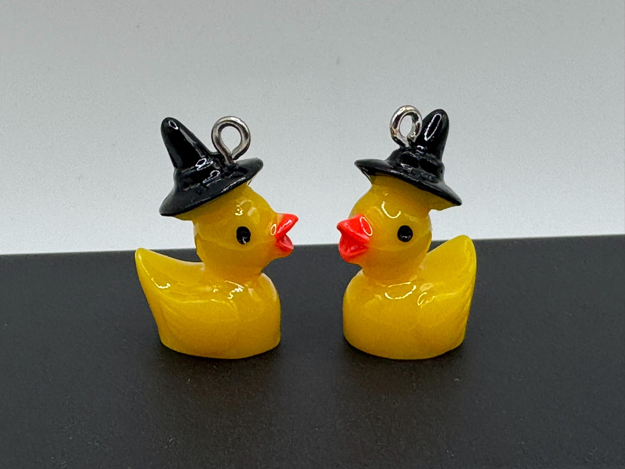 Set of 10 Witch Hat Mini Resin Ducks - Charms with Eye Hooks