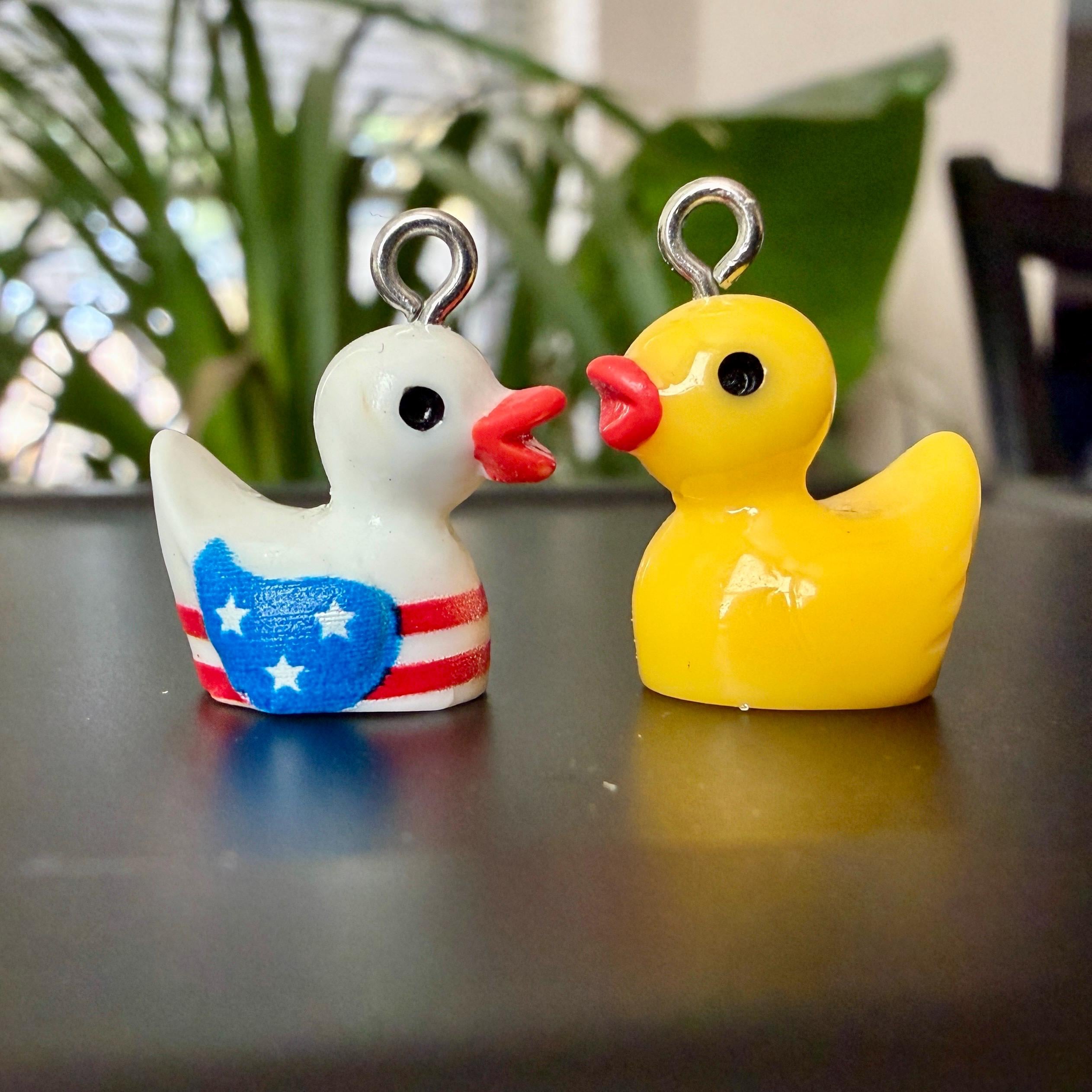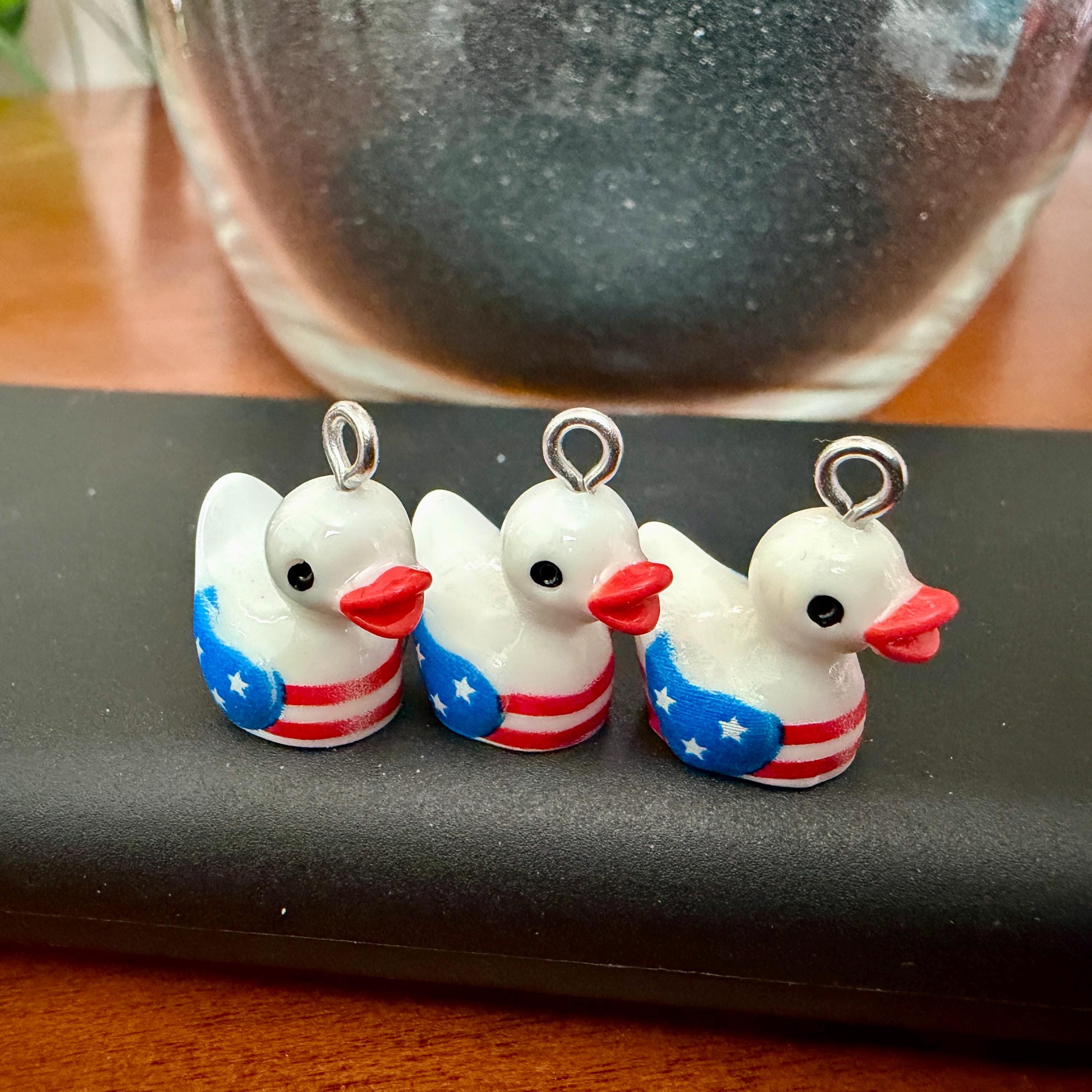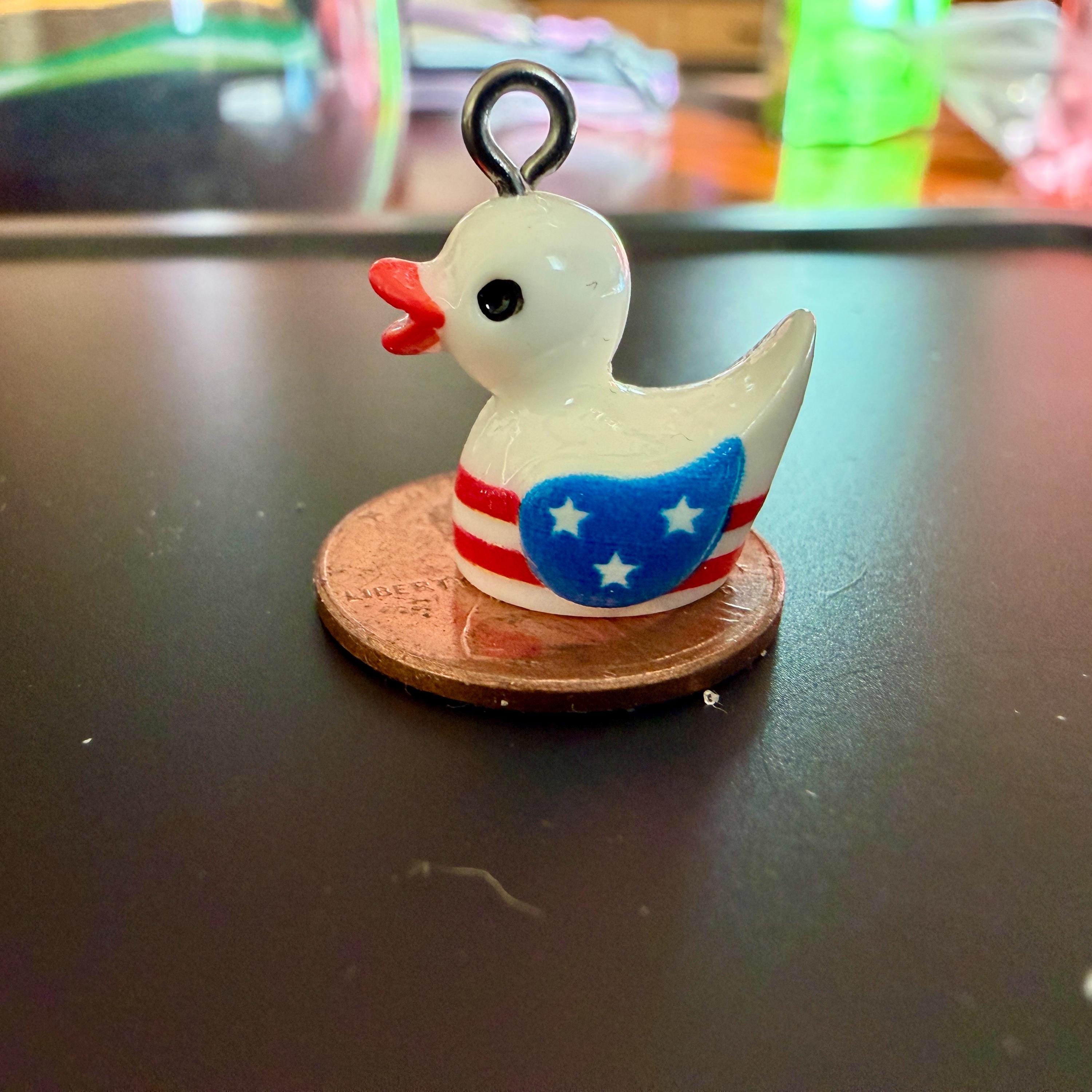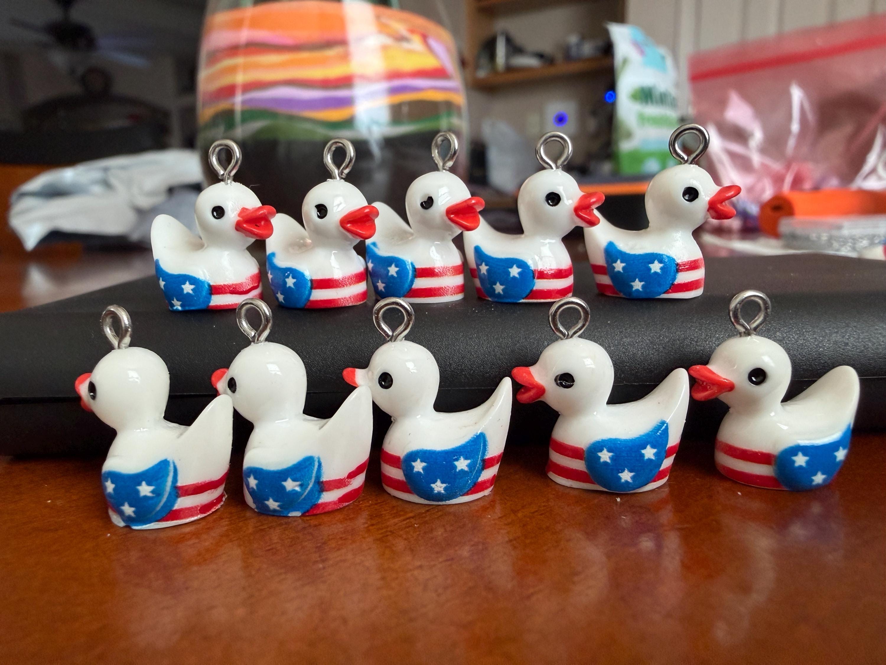 Patriotic duck charms, fun with stars, stripes, and quacks! πŸ¦†πŸ‡ΊπŸ‡Έβ€¨These mini resin ducks are dressed in red, white, and blue and ready to celebrate the 4th of July. Perfect for bracelets, duck hiding, keychains, party favors, or festive crafts. Each duck includes a metal loop for easy attaching and is small, lightweight, and full of patriotic fun!