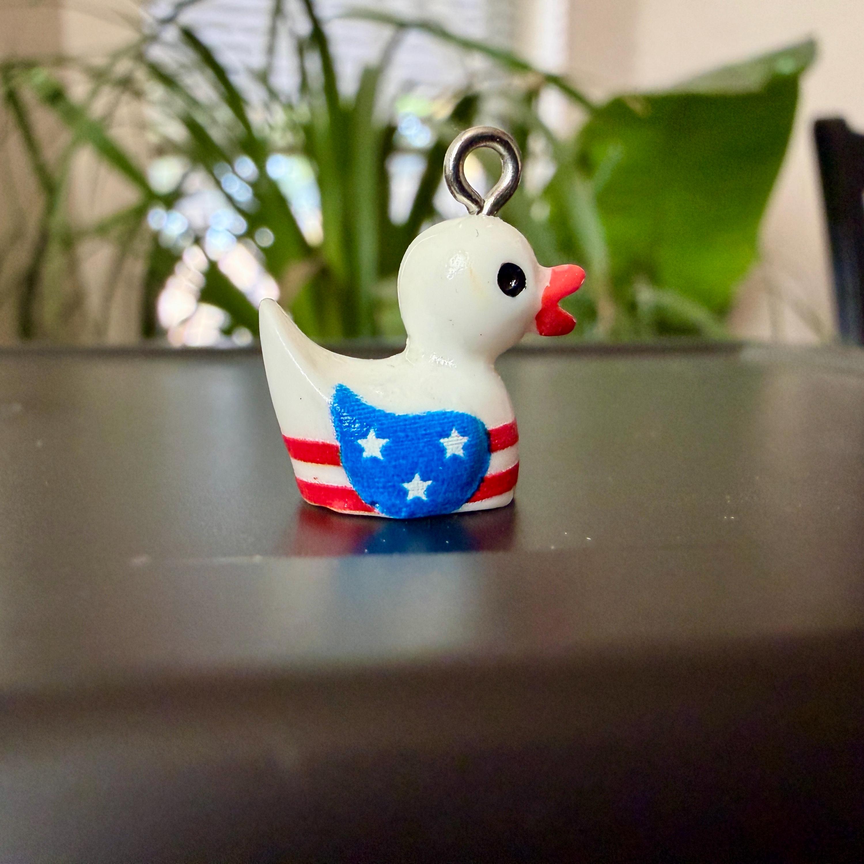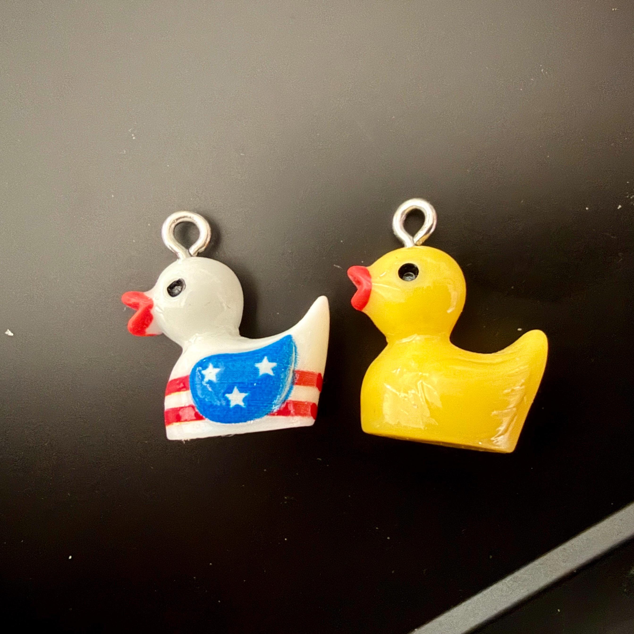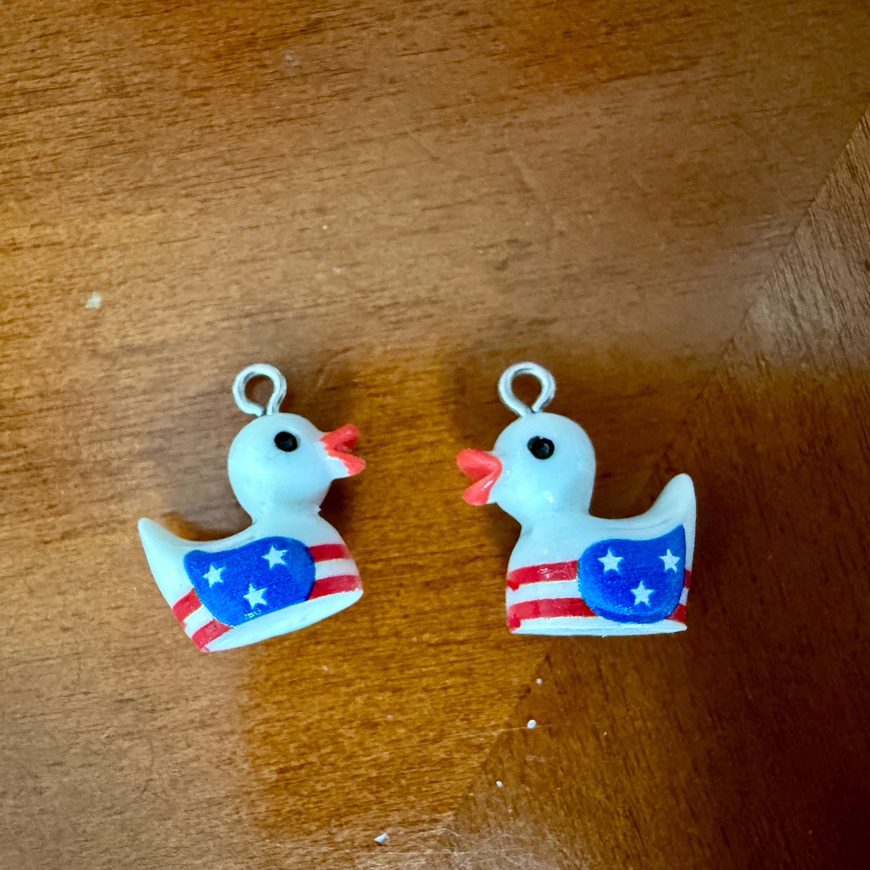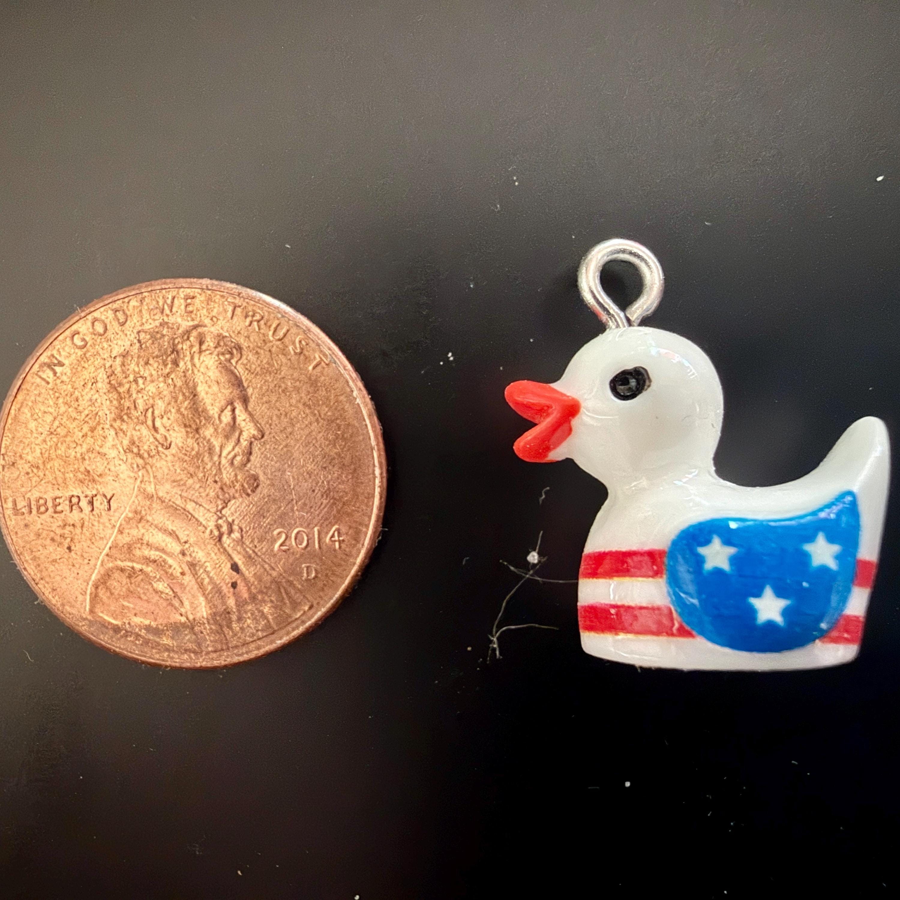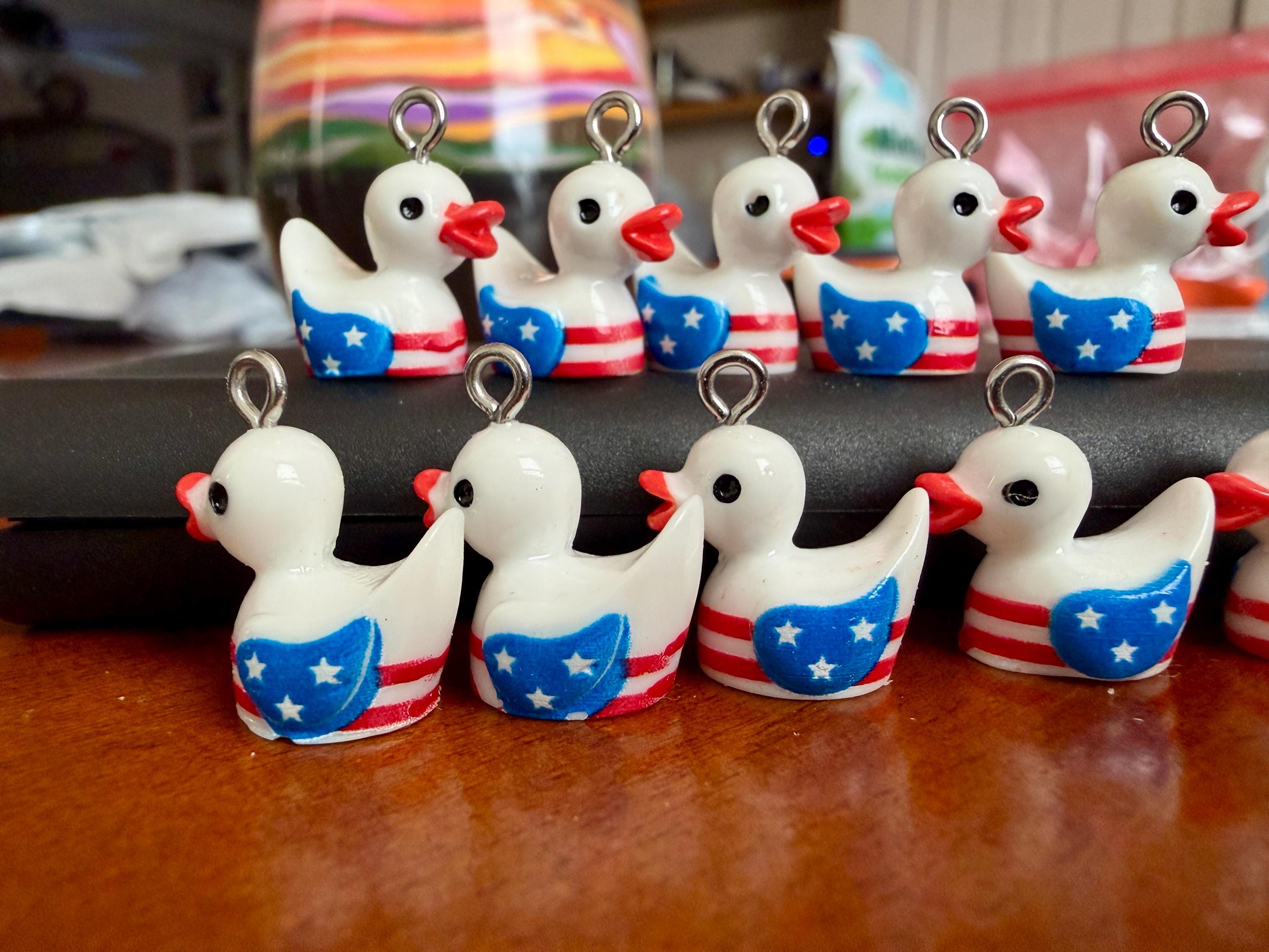 Patriotic duck charms, fun with stars, stripes, and quacks! πŸ¦†πŸ‡ΊπŸ‡Έβ€¨These mini resin ducks are dressed in red, white, and blue and ready to celebrate the 4th of July. Perfect for bracelets, duck hiding, keychains, party favors, or festive crafts. Each duck includes a metal loop for easy attaching and is small, lightweight, and full of patriotic fun!