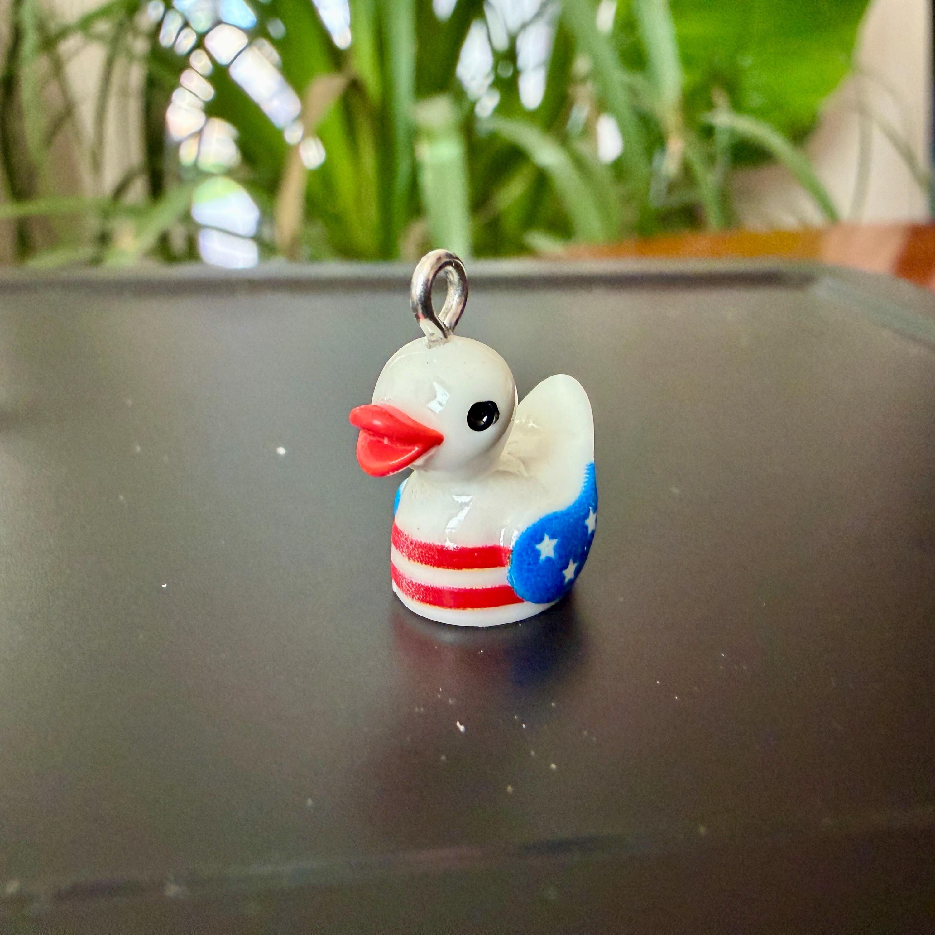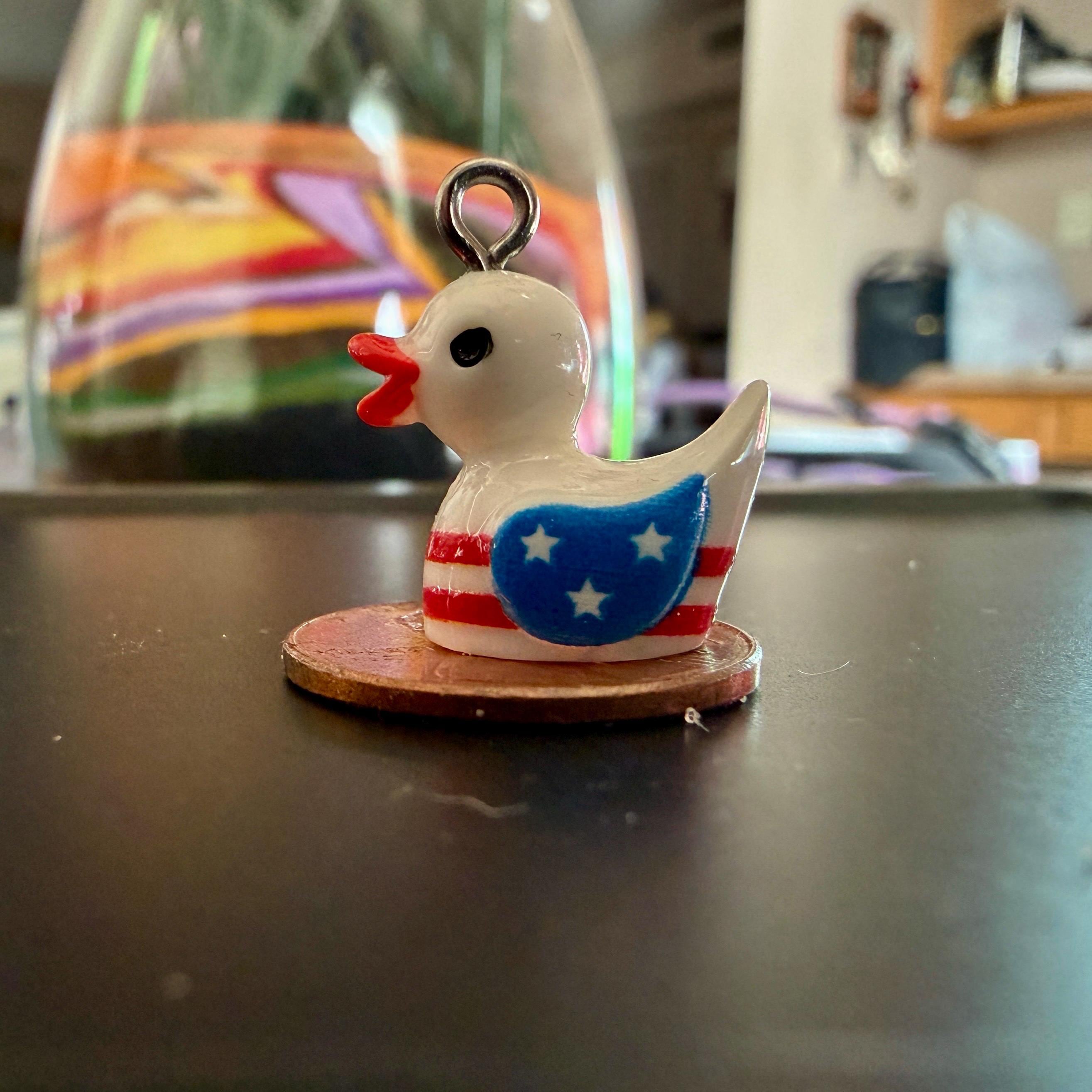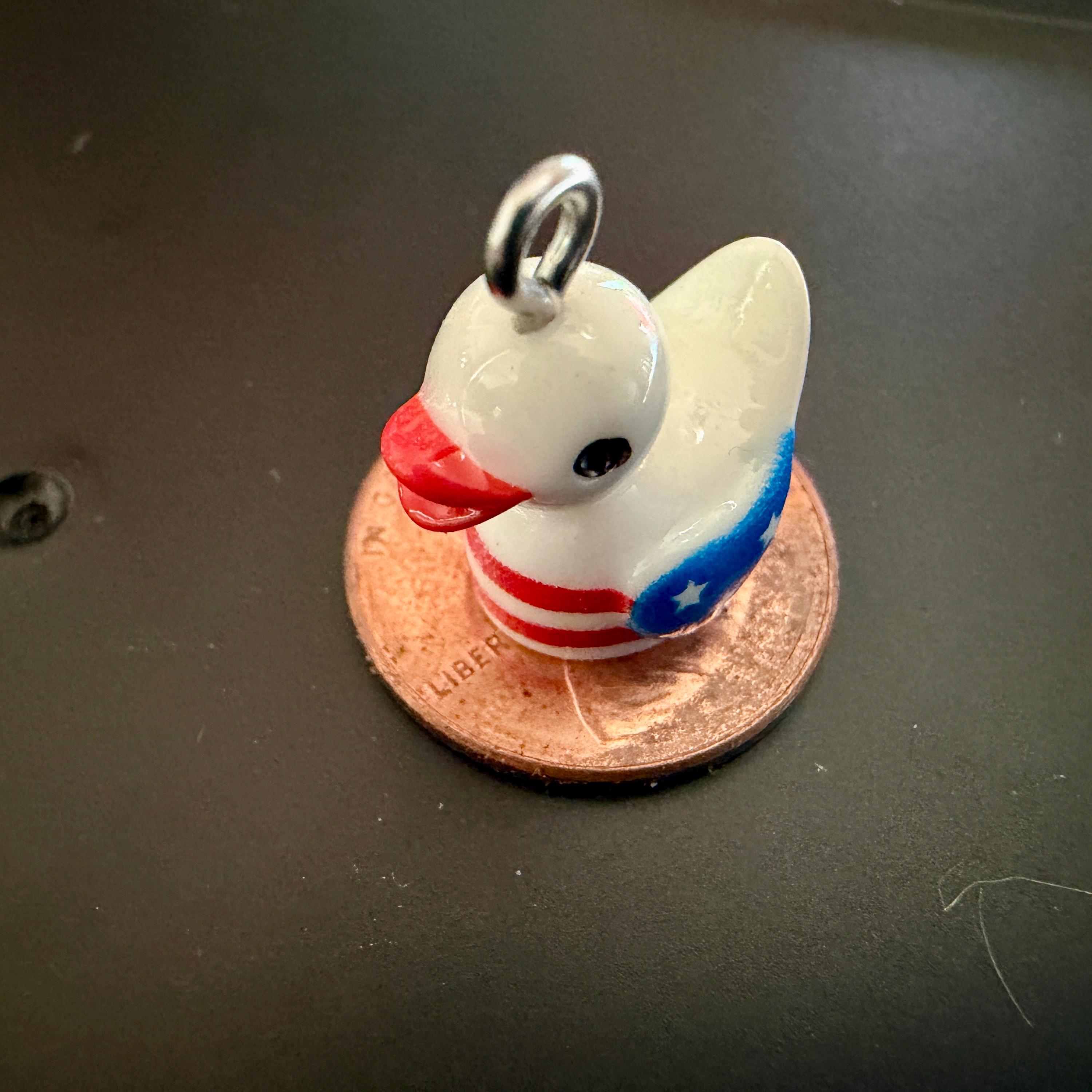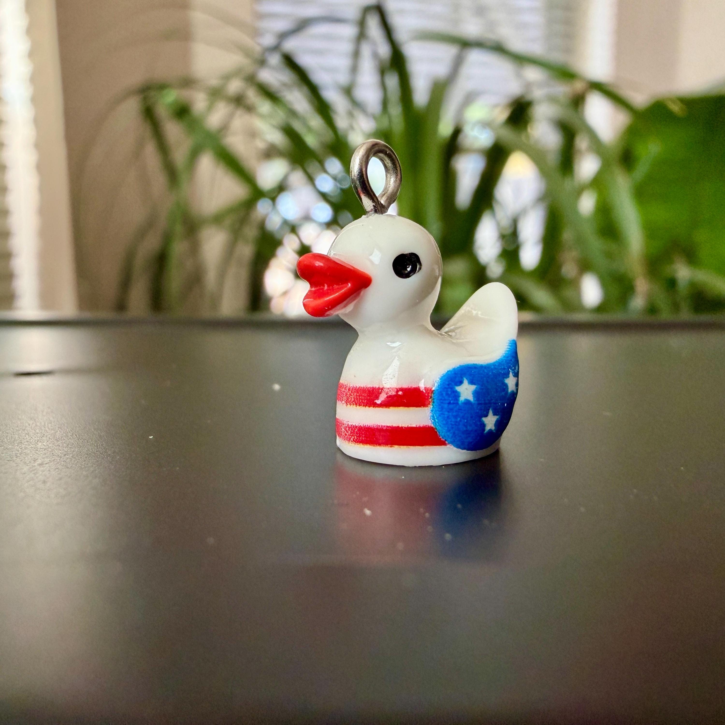 Patriotic duck charms, fun with stars, stripes, and quacks! πŸ¦†πŸ‡ΊπŸ‡Έβ€¨These mini resin ducks are dressed in red, white, and blue and ready to celebrate the 4th of July. Perfect for bracelets, duck hiding, keychains, party favors, or festive crafts. Each duck includes a metal loop for easy attaching and is small, lightweight, and full of patriotic fun!