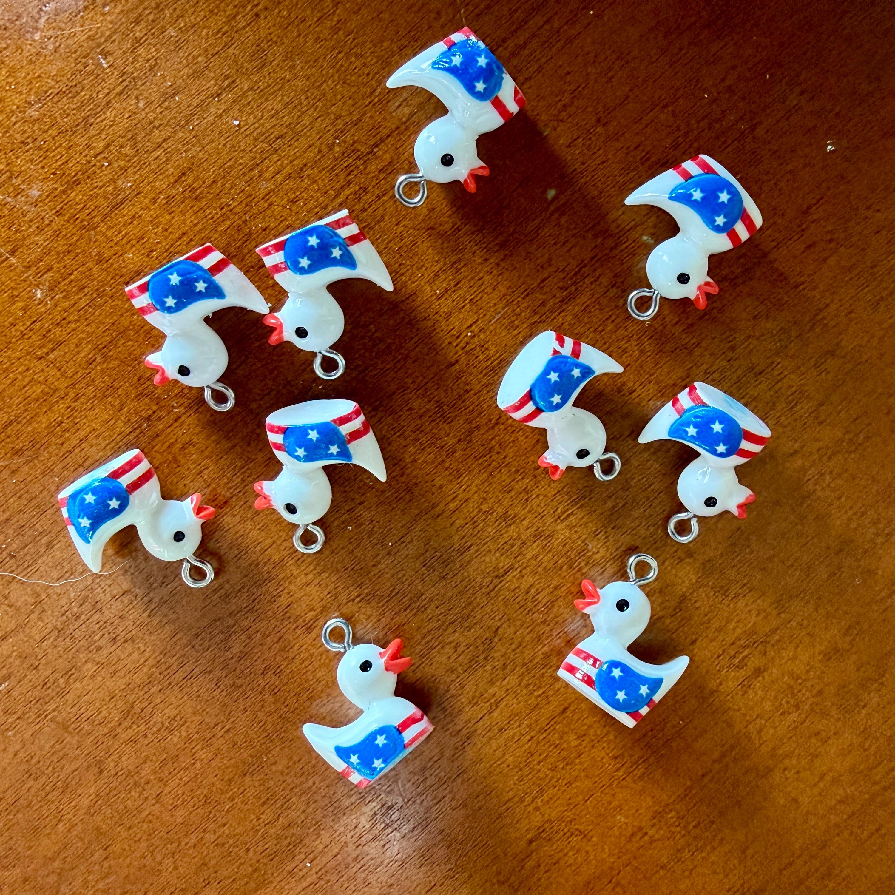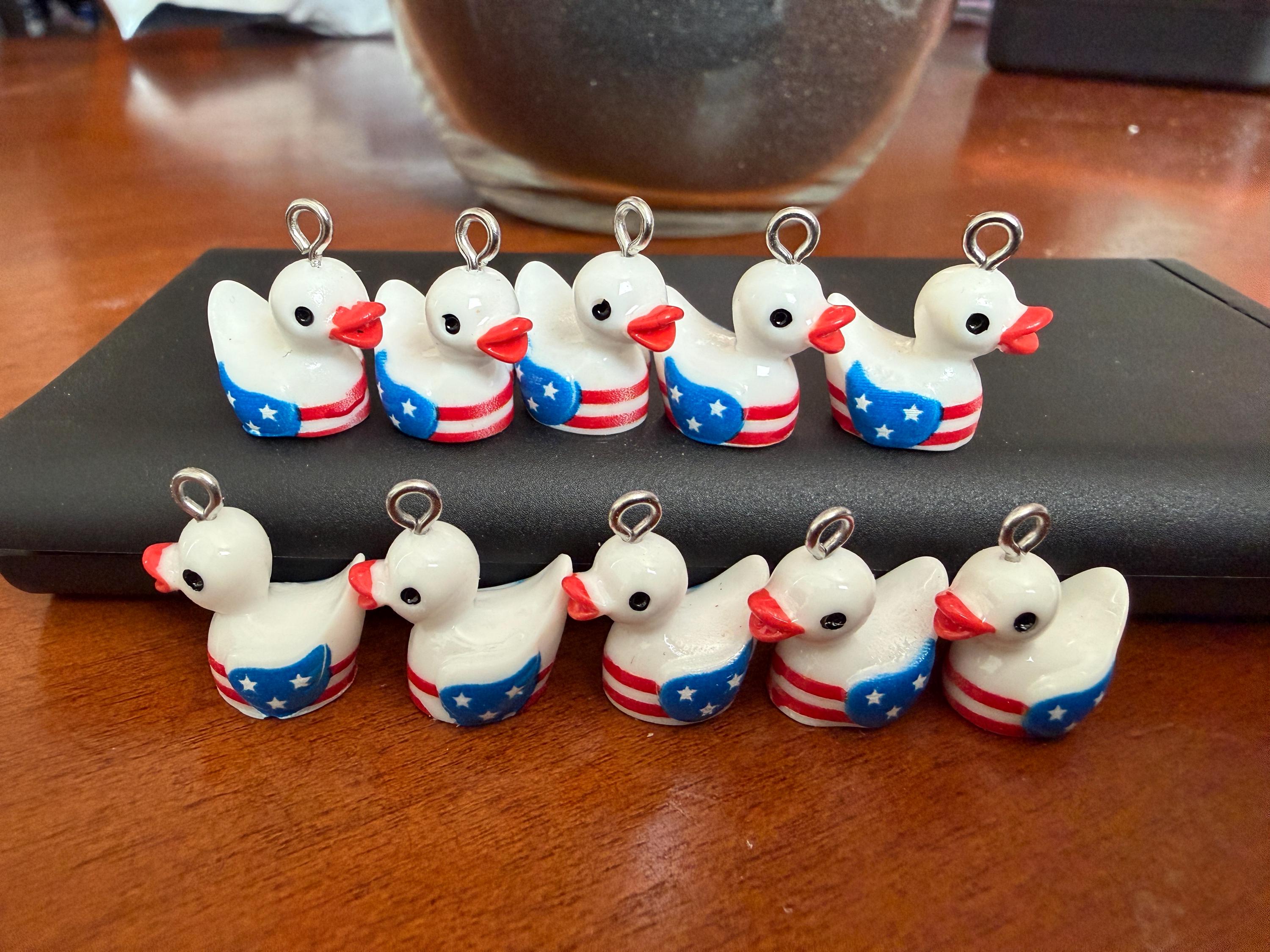 Set of 10 Patriotic Duck Charms – Fourth of July Craft Supplies